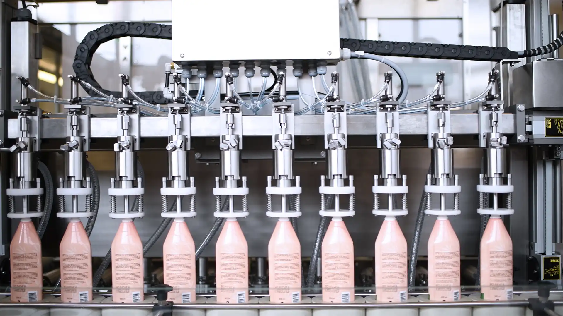 • This technology eliminates the risk of product contamination with micro-particles: the product passes through surgical tubes (which can be sterilised) and only comes into contact with the tap. To change the product to be filled, the operator must simply sterilise the tubes through which the liquid passes, or replace them.